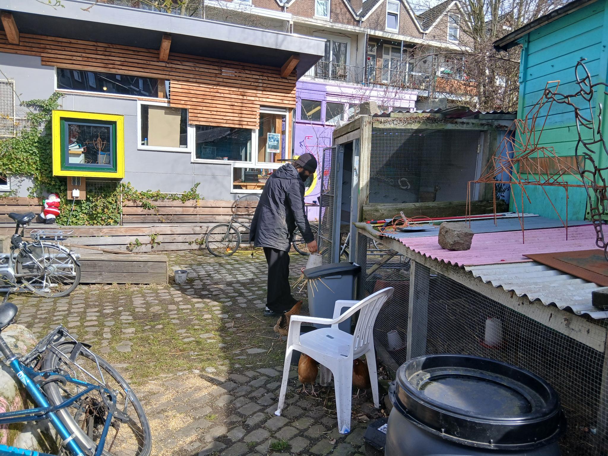 De plek past bij hem. Het is er rustig, een oase in de dichtbevolkte woonwijk Delfshaven. Er is ruimte voor eigen initiatief en daar wordt gretig gebruik van gemaakt. ‘Alles wat je hier ziet, is eigen idee’, vertelt Khalid, terwijl hij een rondleiding geeft.